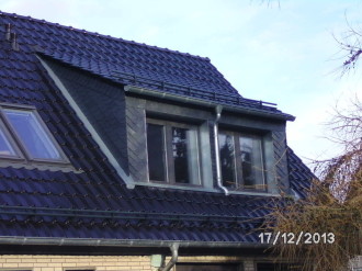 Gaubenbekleidung mit Winkelstehfalz aus walzblanken Bändern,